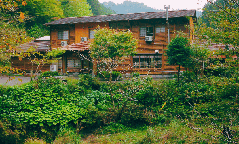 本館 四万十源流の里にある本館客室は、四万十の原木で作られた空間で、木の温もりと香りに包まれた非日常的な体験をご提供します。8畳の和室では、心地よい木の感触と共に、窓から敷地内を流れる清らかな川の景色を一望できます。